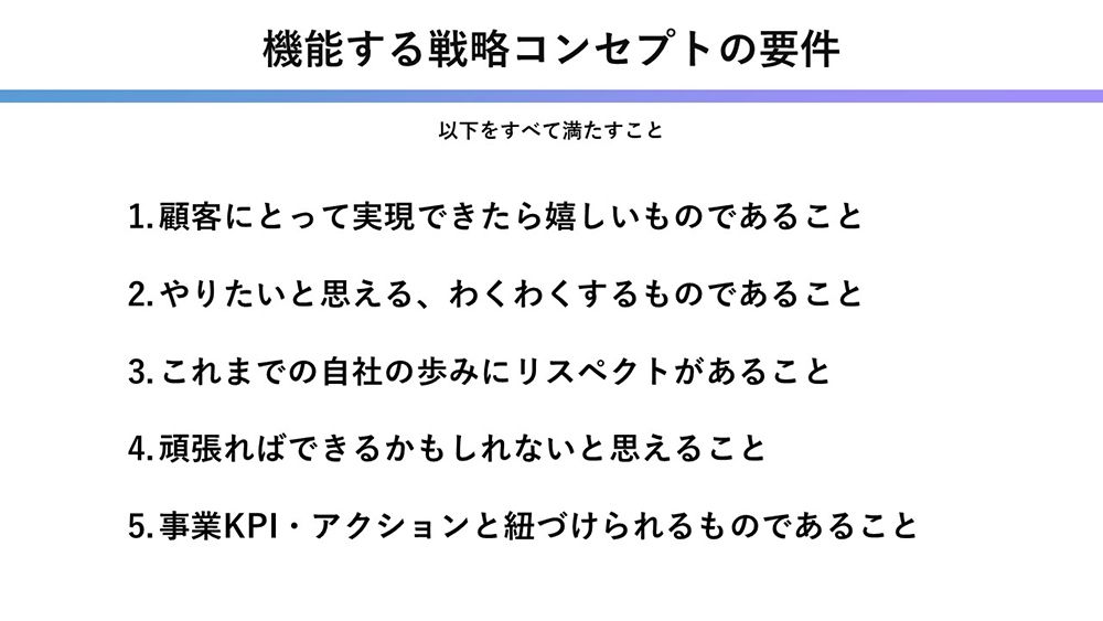 1つ目は「やっぱりまずは、戦略コンセプト」。